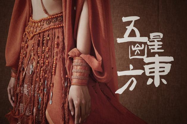 舞剧《五星出东方》的构想和题材来源于古丝绸之路上新疆和田地区民丰县尼雅遗址出土的、中国一级文物“五星出东方利中国”汉代织锦护臂。该剧讲述了汉朝戍边将领奉在精绝古城与北人首领之子建特、精绝首领之女春君之间,从剑拔弩张到并肩携手、从素不相识到深深认同,结下深厚情谊的动人故事。诠释了各族人民“像石榴籽一样紧紧抱在一起”,铸牢中华民族共同体意识的主题。