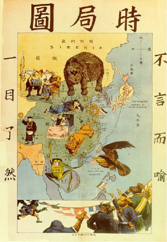 中国近代史有一张著名的时局图,以一帮禽兽盘踞中国的形象唤醒国人。那是一个百年屈辱的时代,那是中国为鱼肉列强为刀俎的时代。时局图明白显示沙俄北极熊盘踞东北。1900年八国联军攻入北京,讹诈了中国4亿两白银庚子赔款,且东北三省沦为沙俄的势力范围。日本不甘心,1905年发动日俄战争,与沙俄争夺远东利益。十月革命以后俄国发生内战,英法美日等列强都支持了白军围剿红军,其中日本出兵了西伯利亚。1931年日本占领东北三省,对于中国人民来说是灾难深重,有亡国灭种之虞,因此有了救亡图存的呼喊。一曲《松花江上》,倾诉了逃难到关内的人民的悲伤。但对于西方列强和西方学者来说,这和中国没关系,这是围堵苏俄的日本军事行动,不在第二次中日战争之内。第二次中日战争要从1937年算起。
