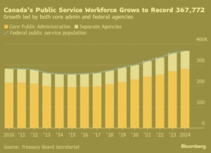 调查显示,超过四分之三的受访者认为公共服务部门规模增长过大,其规模在2024年达到了历史最高水平。卡尼周日表示,将通过自然减员来减少员工人数,但一些联邦机构已发出裁员警告。