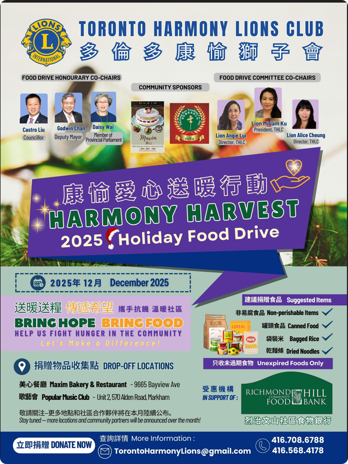 多倫多康愉獅子會今天在烈治文山食物銀行啟動聖誕食物募集行動,呼籲大眾捐贈非易腐食品,在假日期間支持有需要的家庭 […]