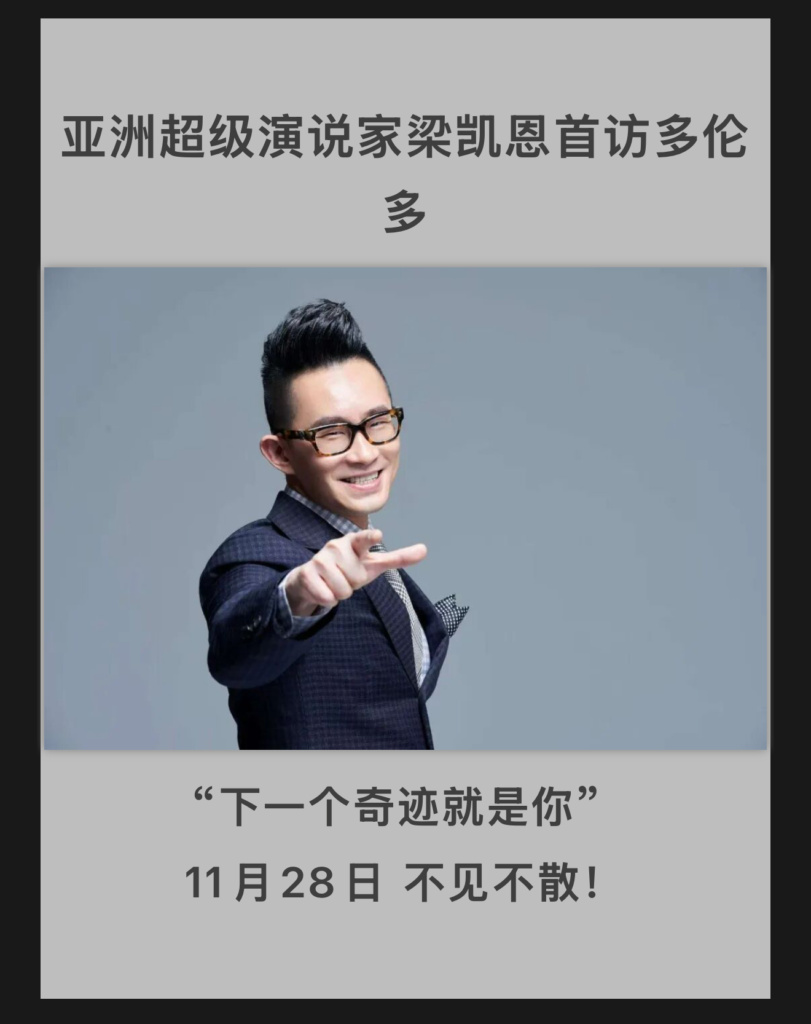 亚洲首席演说家梁凯恩即将登陆多伦多